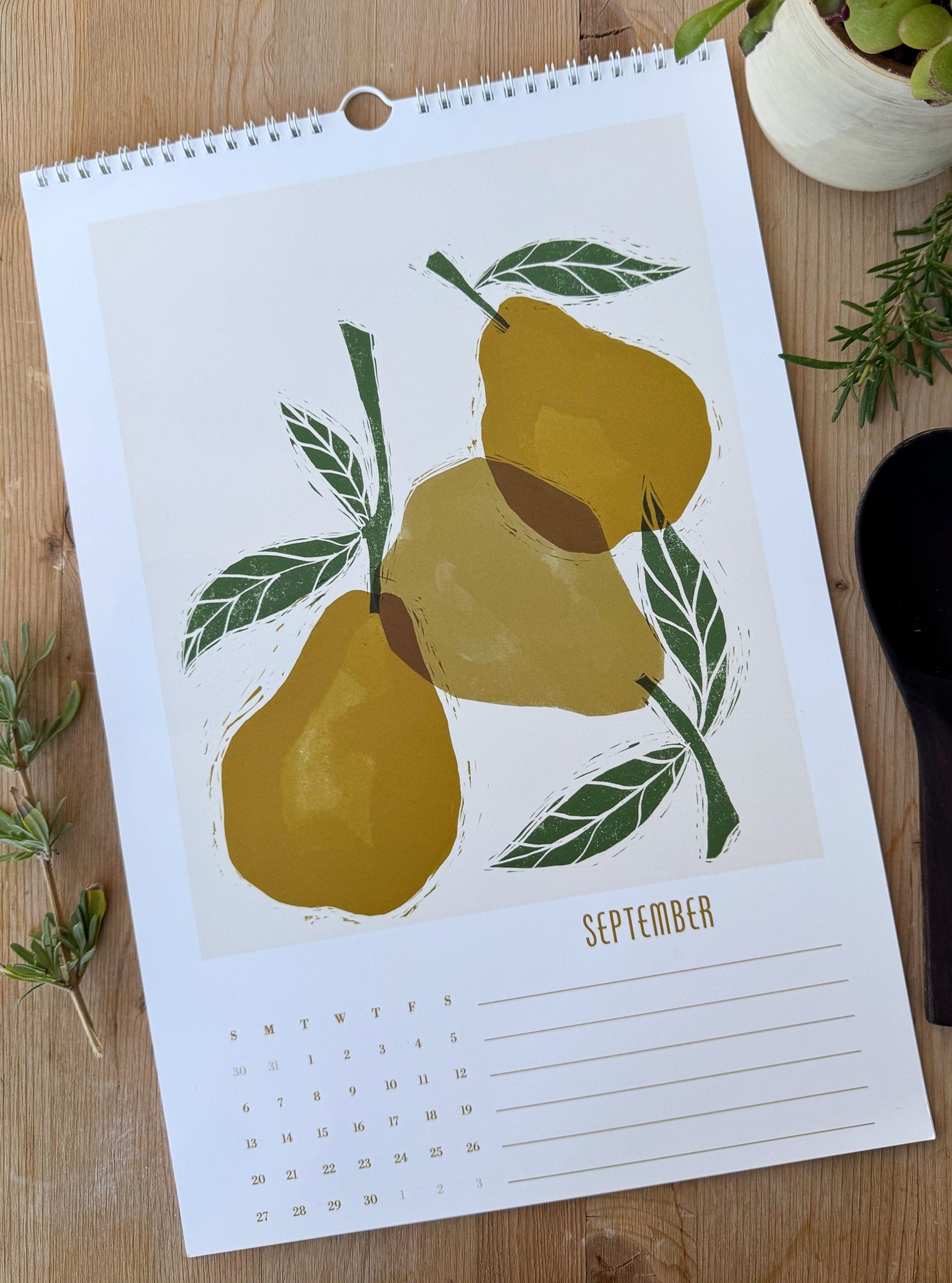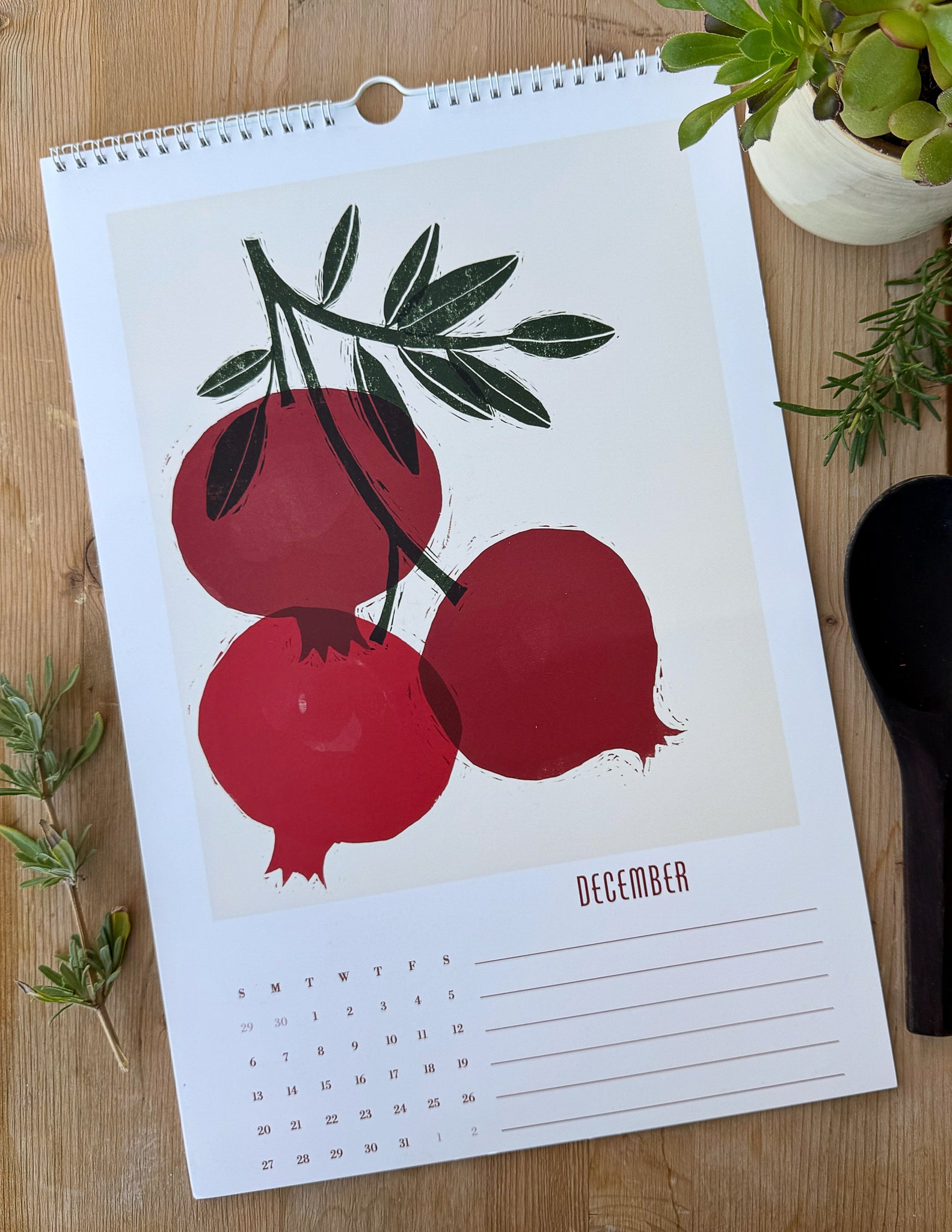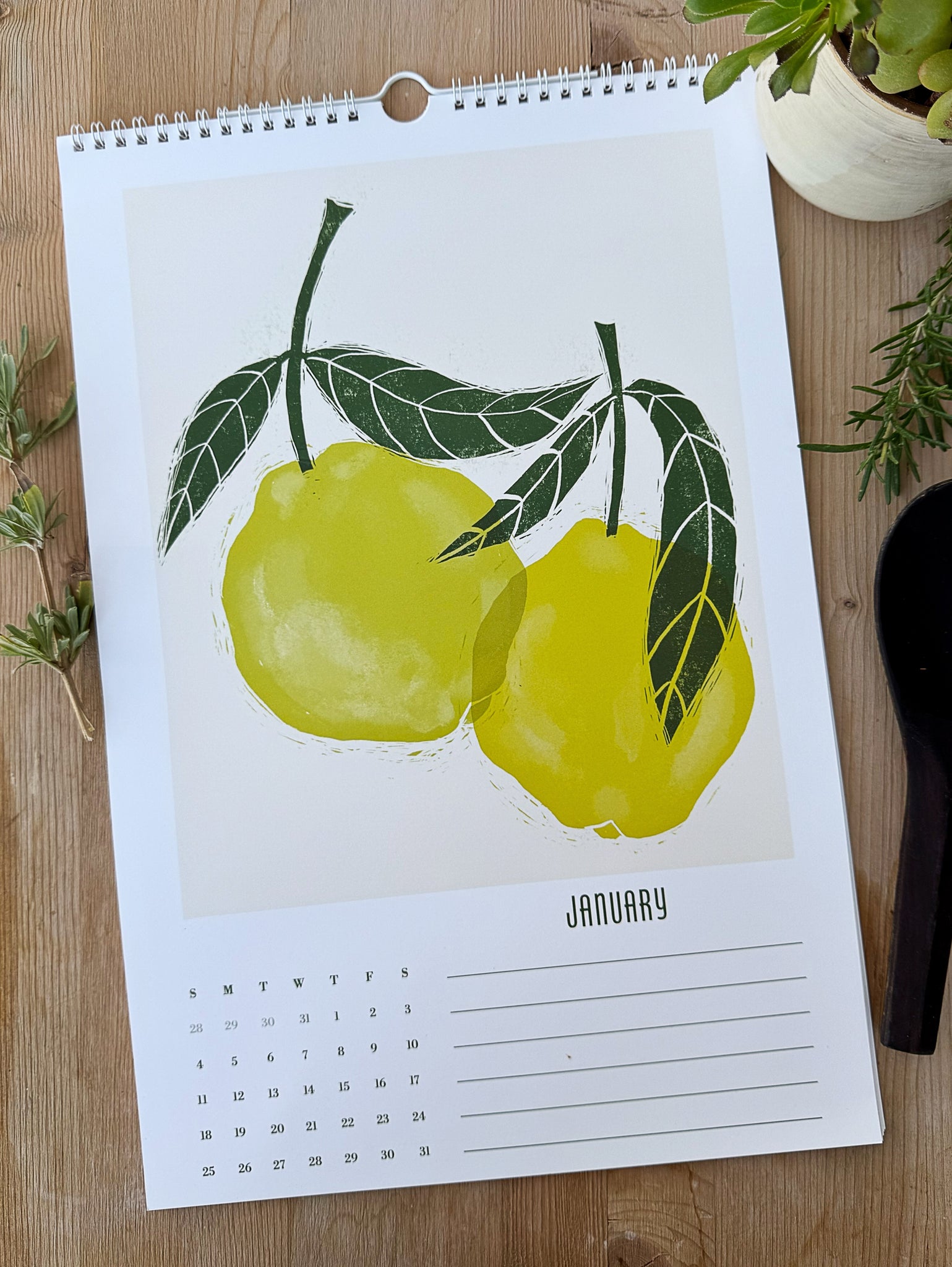 Foraged Fruit 2026 Calendar-Hand Illustrated Block Print Style Botanical Calendar