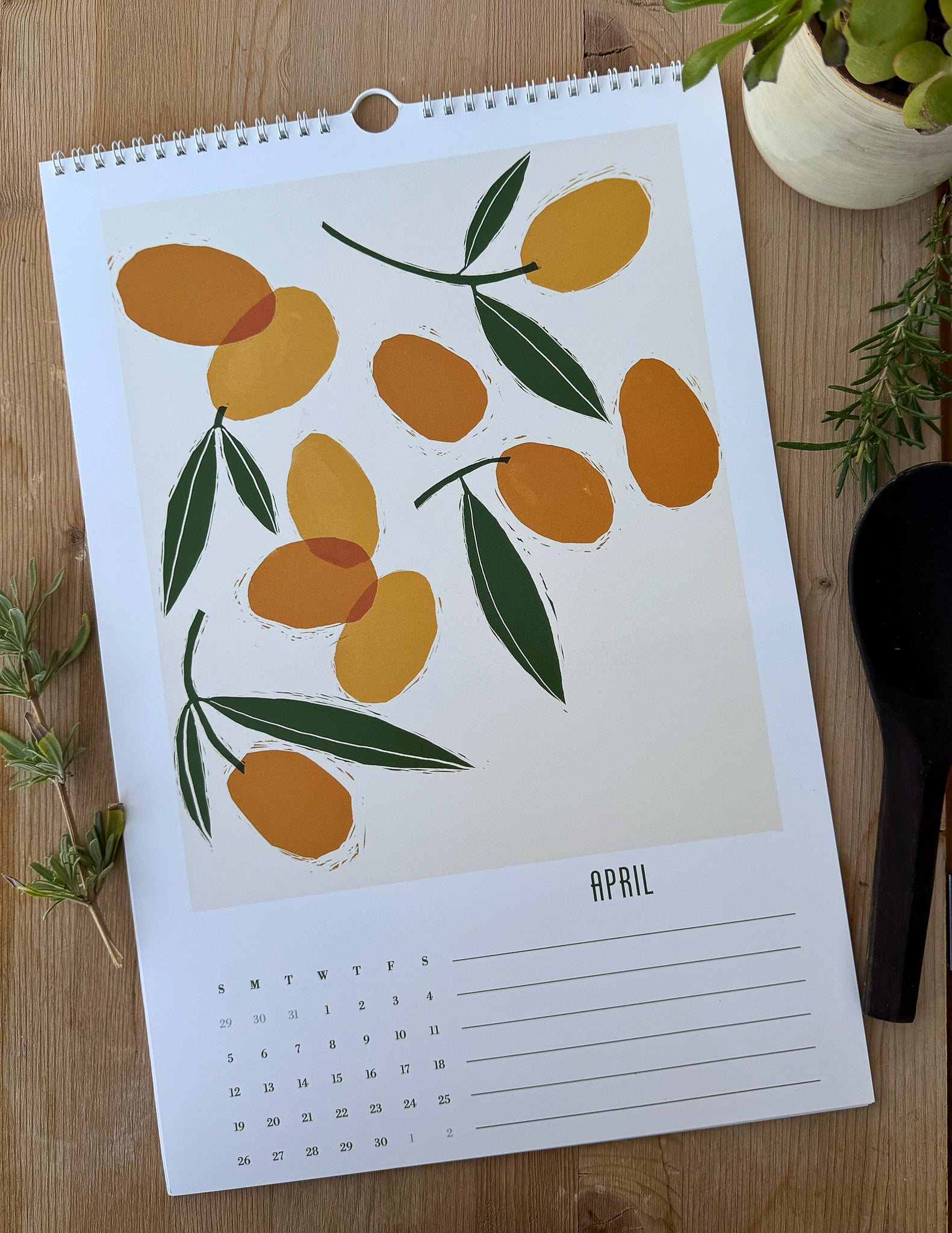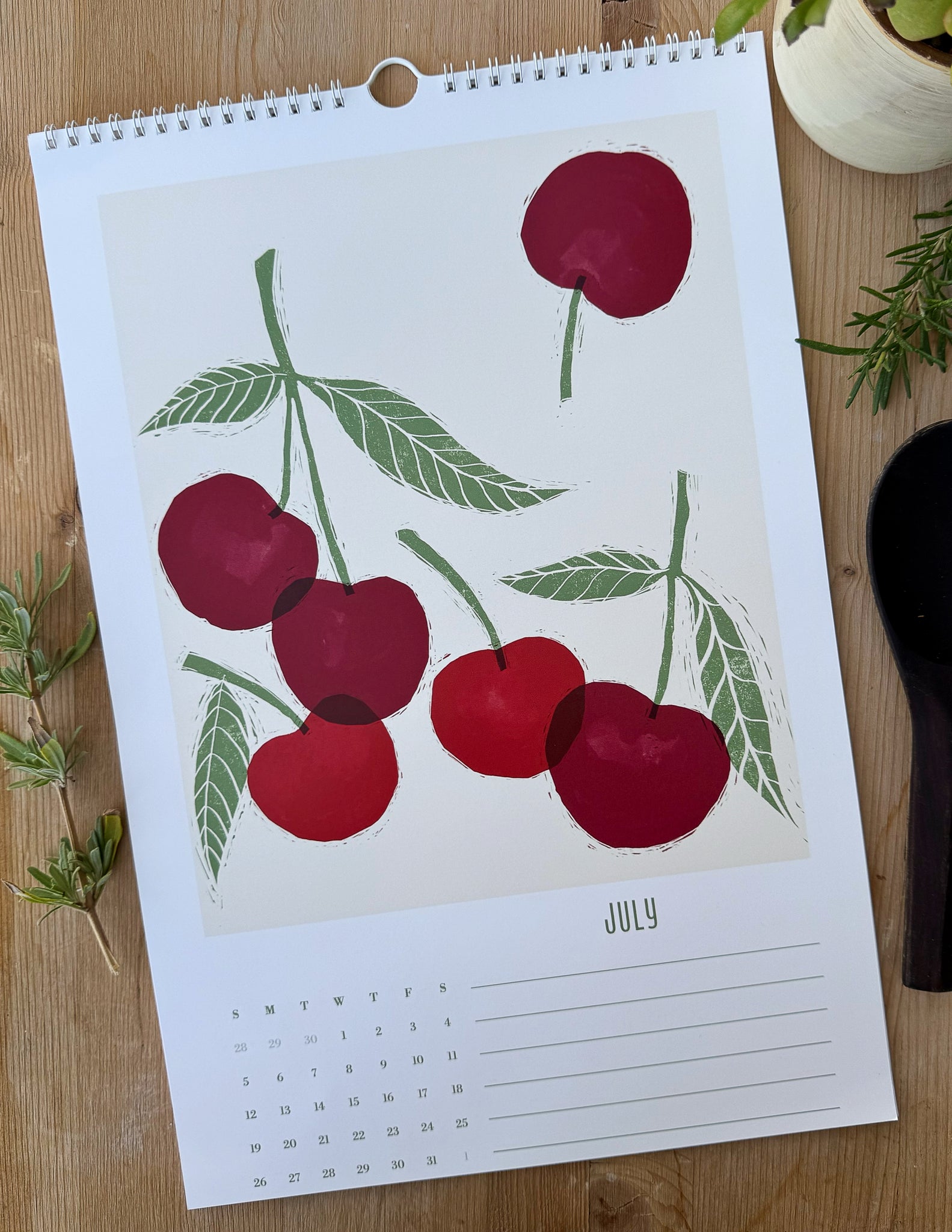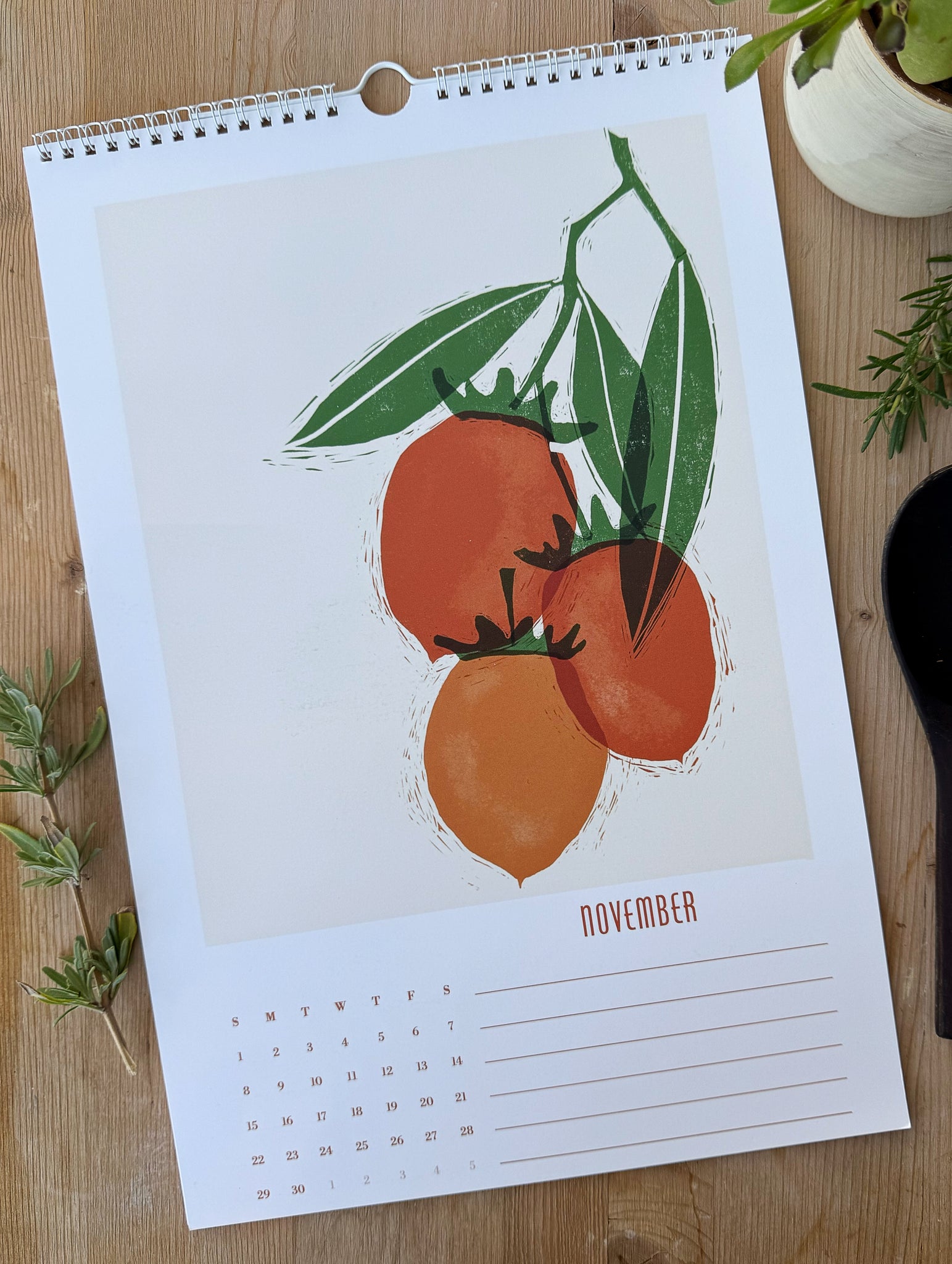 Foraged Fruit 2026 Calendar-Hand Illustrated Block Print Style Botanical Calendar